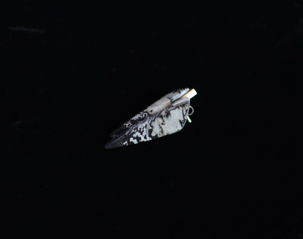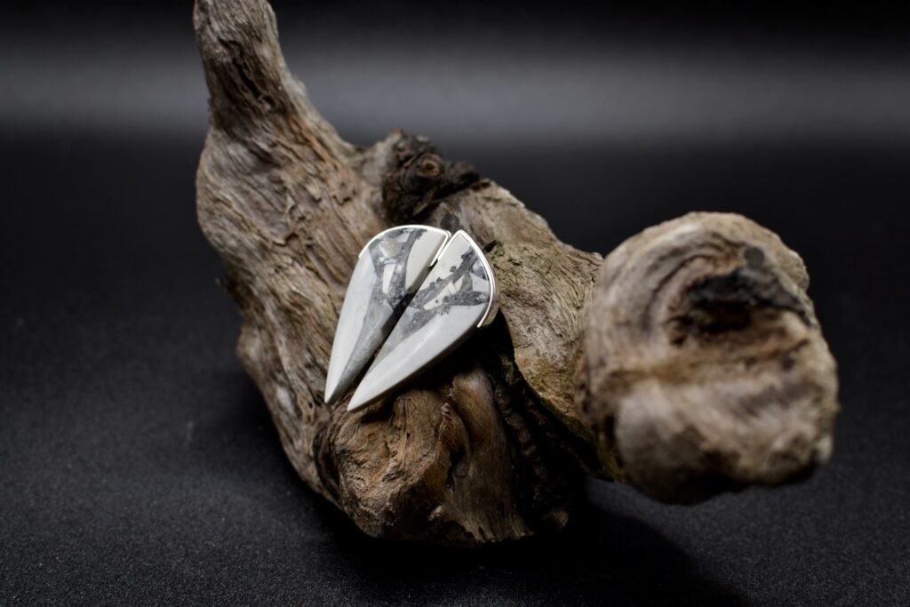 Komplekt – kõrvarõngad ja ripats. Hõbe (925) ja kivistunud puit.