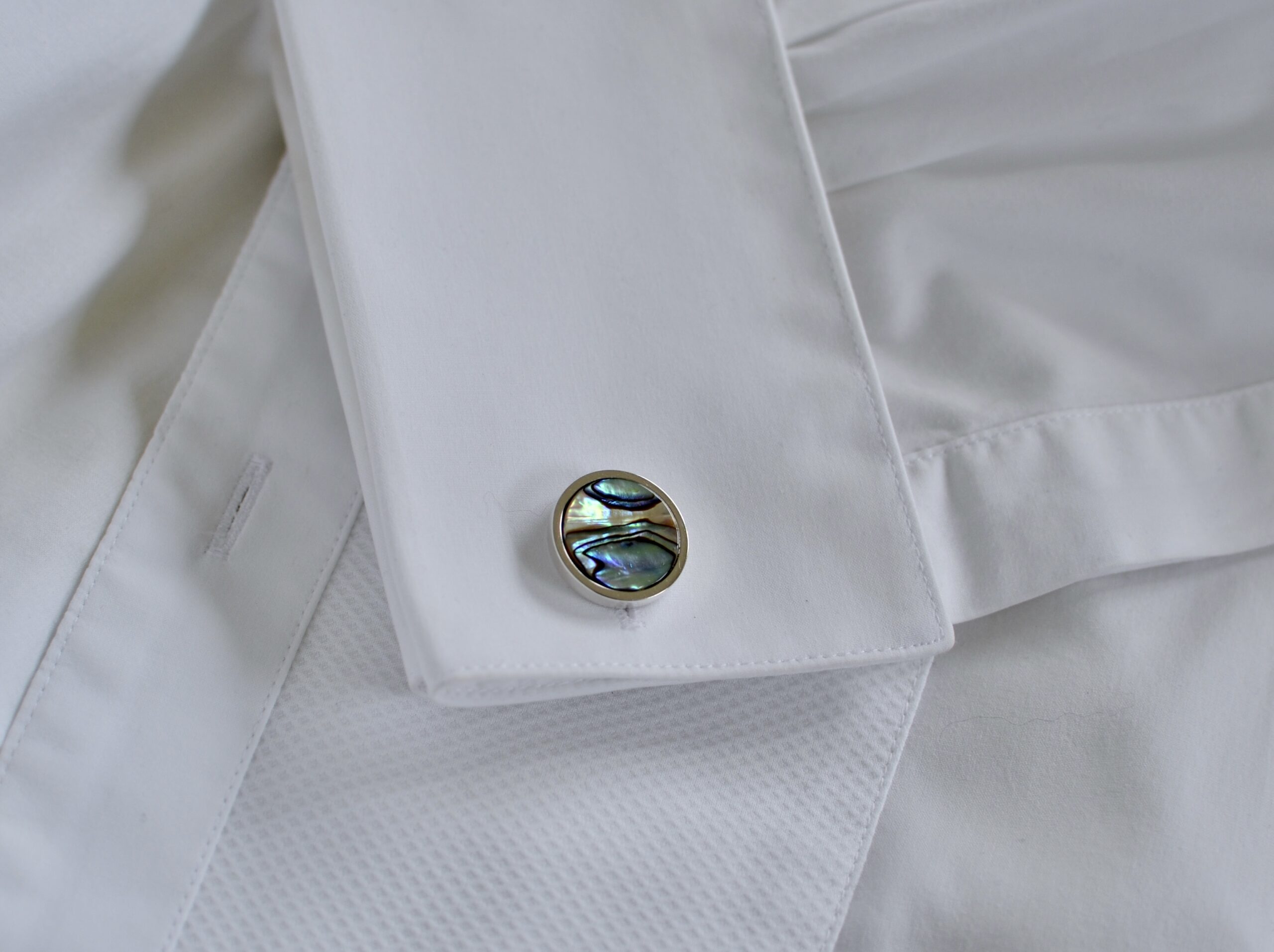 Mansetinööbid. Hõbe (925) ja merikõrva koda. Läbimõõt 20mm.